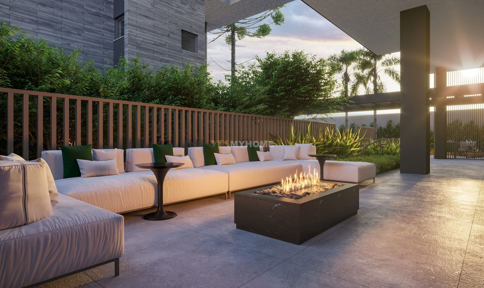 Jardins contemplativos externos ambientados, envoltos pelo paisagismo